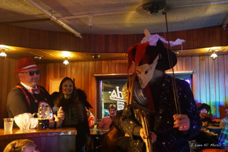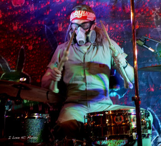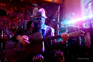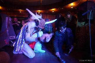 Freight Train Rabbit Killer released their first of four 7-inch albums via Haymaker Records on October 28th at Stockyards Brewing Co. Halloween weekend was the perfect weekend for this masked duo to release their two song album into the world. This record has the songs "Old Man of the Mountain" and "Maybe It's You" on it. Stockyards was packed, some in the traditional FTRK masks, others in their Halloween costumes, but all were full of anticipation for the show to begin. GASCAN, a new punk band in KC started off the night. After a short break and Kristopher changed out of his GASCAN uniform, Mark and Kristopher played a rare unmasked set before playing their traditional masked set. This doom blues band knows how to engage a crowd in unique way. At one point some drum sticks ended up in the crowd and Tyson of Abandoned Bells/(the)medicine theory was drumming along on the floor with another costumed concert goer while the drummer (Gas Tank) from GASCAN sat in for some of the set to add percussion to the set. Although the music is dark and heavy, the energy in the room was exuberant. Check out the video for Old Man of the Mountain HERE.